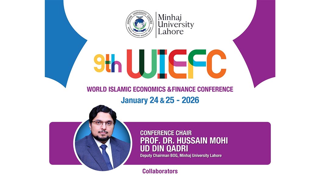 منہاج یونیورسٹی لاہور کے زیرِ اہتمام 9ویں ورلڈ اسلامک اکنامکس اینڈ فنانس کانفرنس 2026 کا انعقاد 24 اور 25 جنوری 2026 کو “اسلامی معیشت و مالیات کے مستقبل کے نئے زاویے: مصنوعی ذہانت کی تبدیلی اور عالمی جغرافیائی حالات” کے موضوع پر کیا جا رہا ہے۔