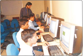 بچوں کے لیے کمپیوٹرز موجود ہیں پرائمری کی کلاسز سے ہی بچوں کوکمپیوٹر کی تعلیم دی جاتی ہے۔