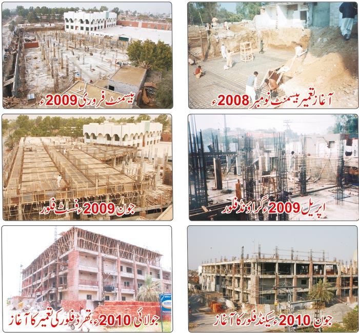 1۔ یتیم و بے سہارا بچوں کی کفالت کا ادارہ "آغوش" جو کہ پانچ منزلہ عمارت پرمشتمل ہے۔ جس میں بیسمنٹ سمیت چار منزلیں شامل ہیں۔ جو کہ نیو کیمپس (بغداد ٹاؤن) ٹاؤن شپ میں زیر تعمیر ہے۔ آغوش کی یہ عمارت 20 کنال یا دو ایکڑ کے رقبے پر تعمیر ہو رہی ہے۔