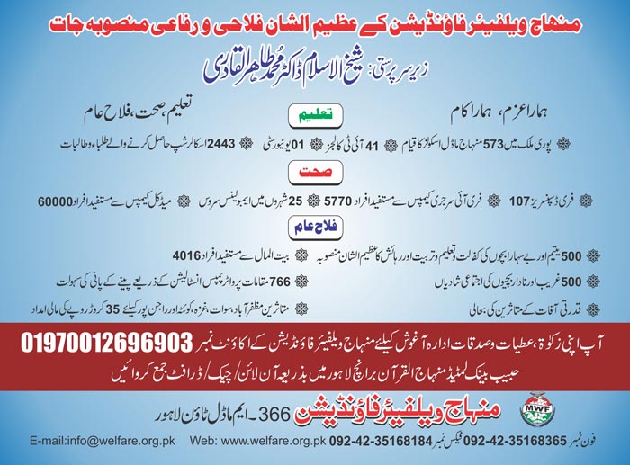 تر ہوتا جا رہا ہے۔ منہاج ویلفیئر فاؤنڈیشن دنیا بھر کے مفلوک الحال اور اَفلاس زدہ